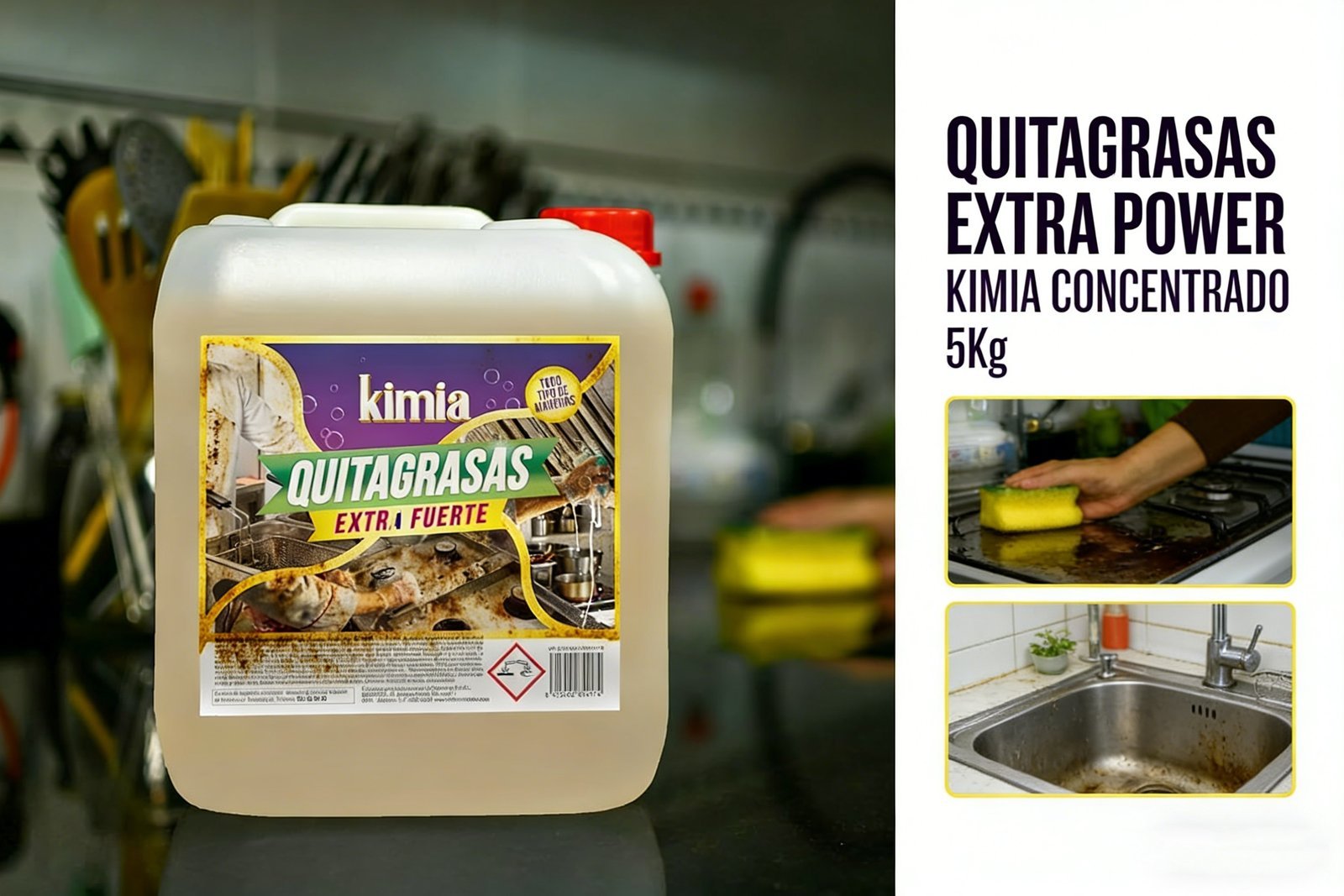 Quitagrasas Kimia Extra Power, elimina grasa en segundos.